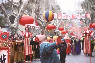 本届行街会分为“千年记忆 吟诵江南春韵”“都市民俗 彰显时代风华”“同庆同乐 共绘幸福篇章”三大主题。下午2时30分,苏家屯路早已里三层外三层围满观众。