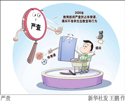 记者2月25日从教育部获悉,2026年,教育部将深入实施学生体质强健计划,着力提升学生体质健康水平,严防“阴阳课表”,严查挤占体育课、课间不准学生出教室等行为。■新华社发 王鹏 作