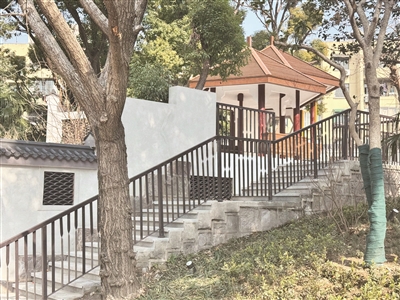 上午,阳光正好。在市光一村“硕园”,穿过徽派风格的门楼,一条平整的步梯缓缓向上延伸,通向园中心的凉亭,白墙黛瓦,邀人步入一幅清新的画卷。