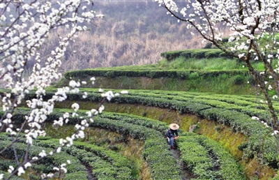 3月13日,茶农在三峡库区湖北省宜昌市秭归县茅坪镇金缸城村一茶园采摘春茶。