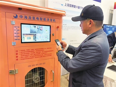 在上海中海龙智械科技股份有限公司的展台前,一台造型新颖的氢电智能洗宠机吸引了不少参观者驻足体验。企业工作人员介绍,这款设备采用富氢水洗护技术,能轻松清洗体型在100斤以内的各类宠物,不仅清洁效果更佳,收费价格也远低于市场均价,目前已在杨浦区四平路街道、定海路街道落地投放,为社区养宠居民带来便捷又实惠的洗护新选择。
