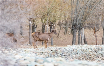 3月15日,在西藏山南市乃东区结巴村,国家一级保护动物白唇鹿现身觅食。随着当地生态环境持续改善、生物多样性保护力度不断加大,白唇鹿数量逐渐增加,成为高原生态向好的生动写照。■新华社记者 晋美多吉 摄